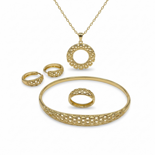 Parure Bijoux Luxe Dorée – Collier, Bracelet, Bague et Boucles d’oreilles